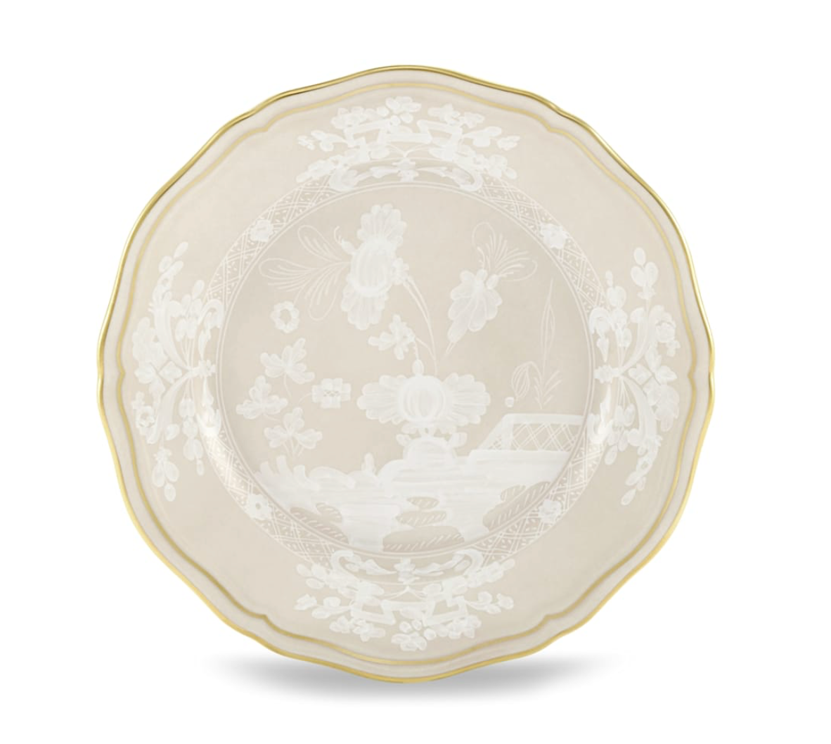 Piattino da pane in porcellana con decoro Meringa e filettatura oro. Collezione Oriente Italiano.