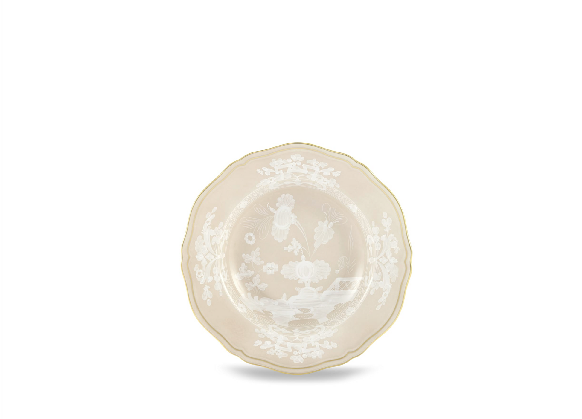Piatto fondo in porcellana con decoro Meringa e filettatura oro. Collezione Oriente Italiano.
