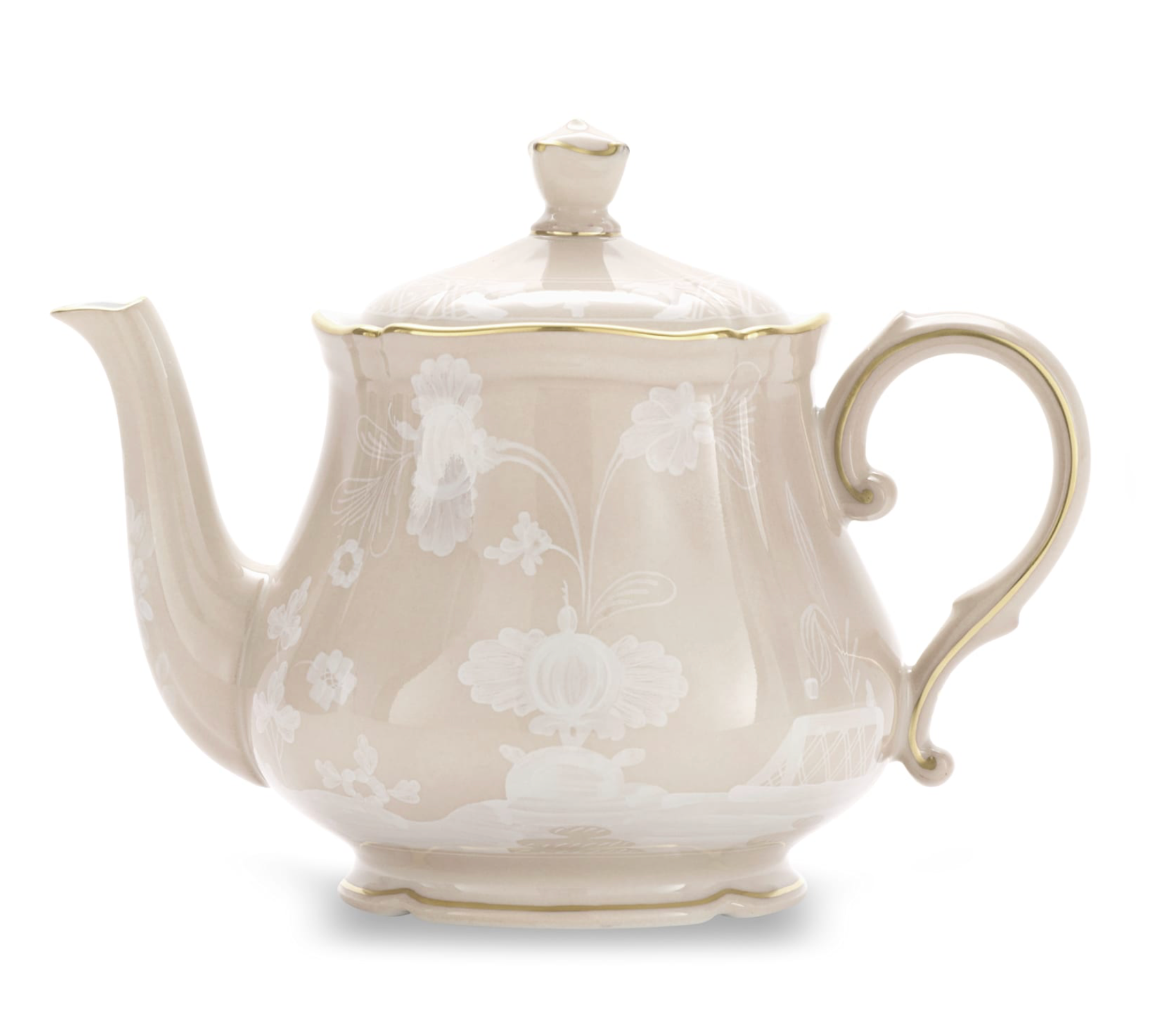Teiera in porcellana con decoro Meringa e filettatura oro. Collezione Oriente Italiano.